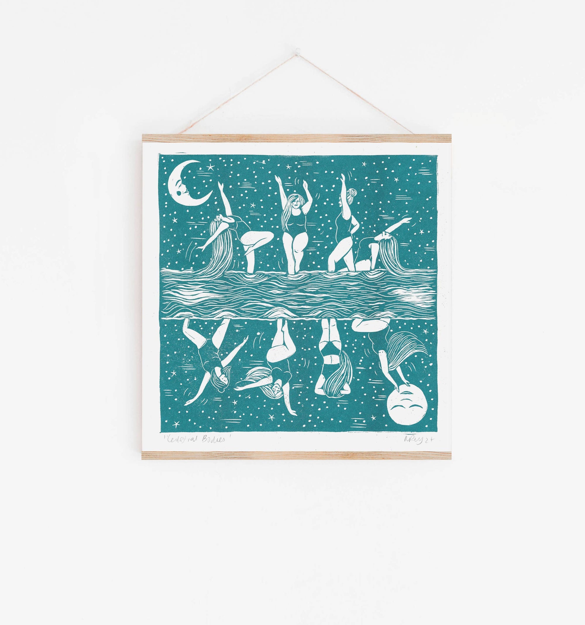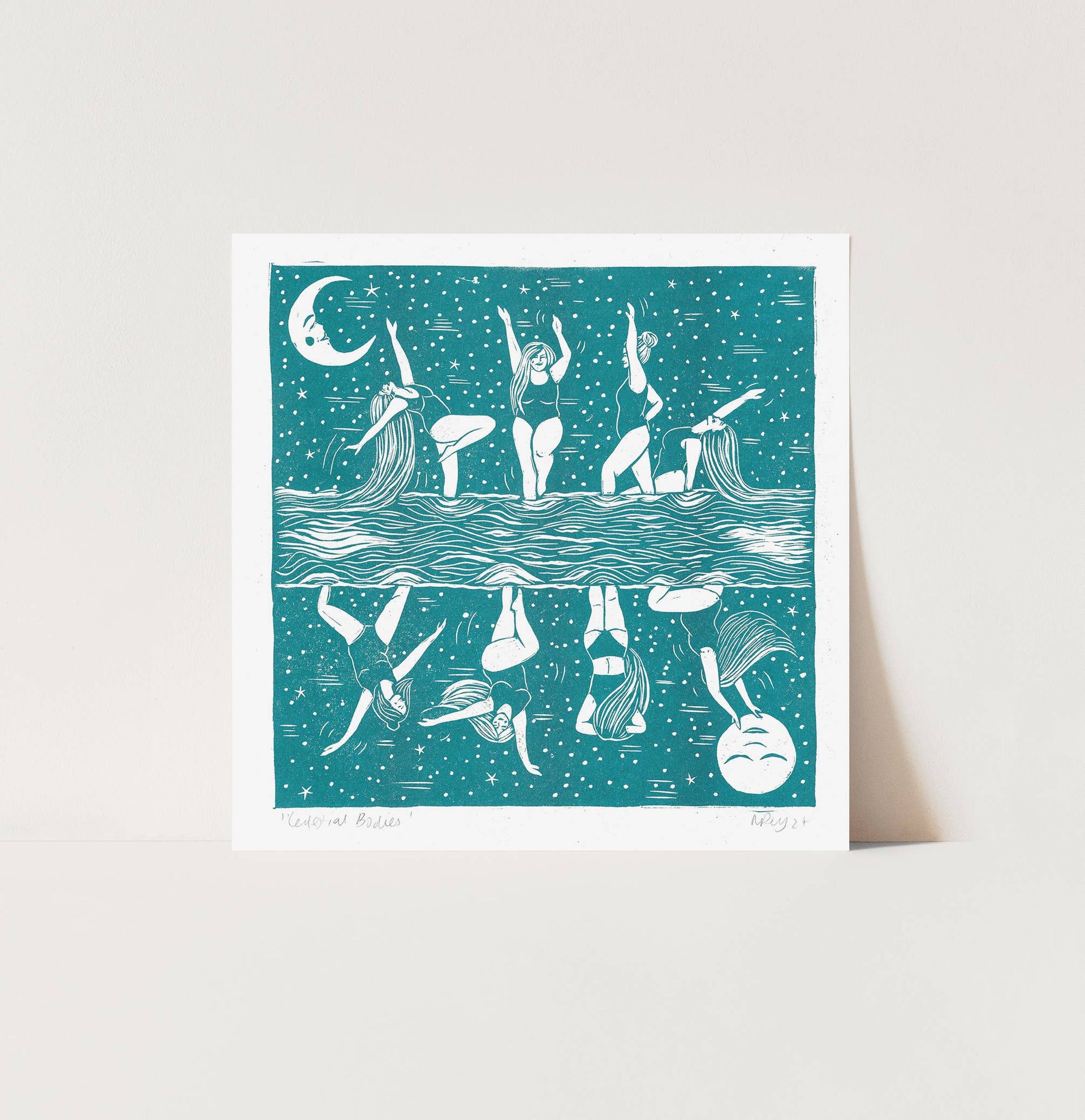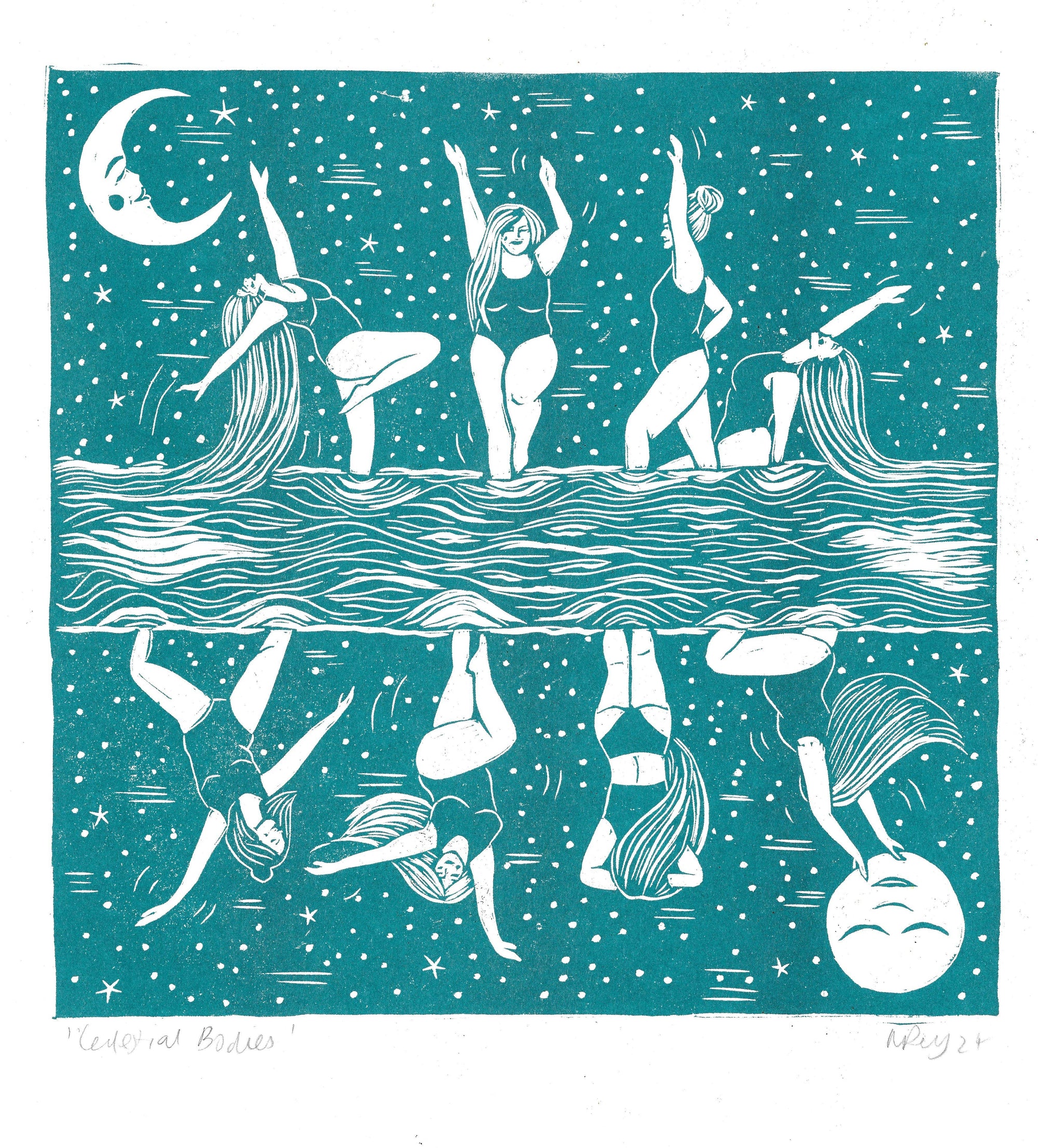 Celestial Bodies card, moon cycle, swimming, female, dance
